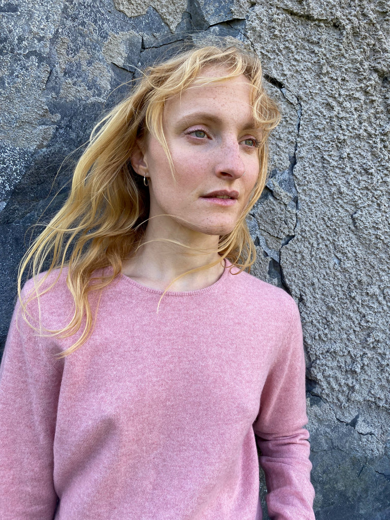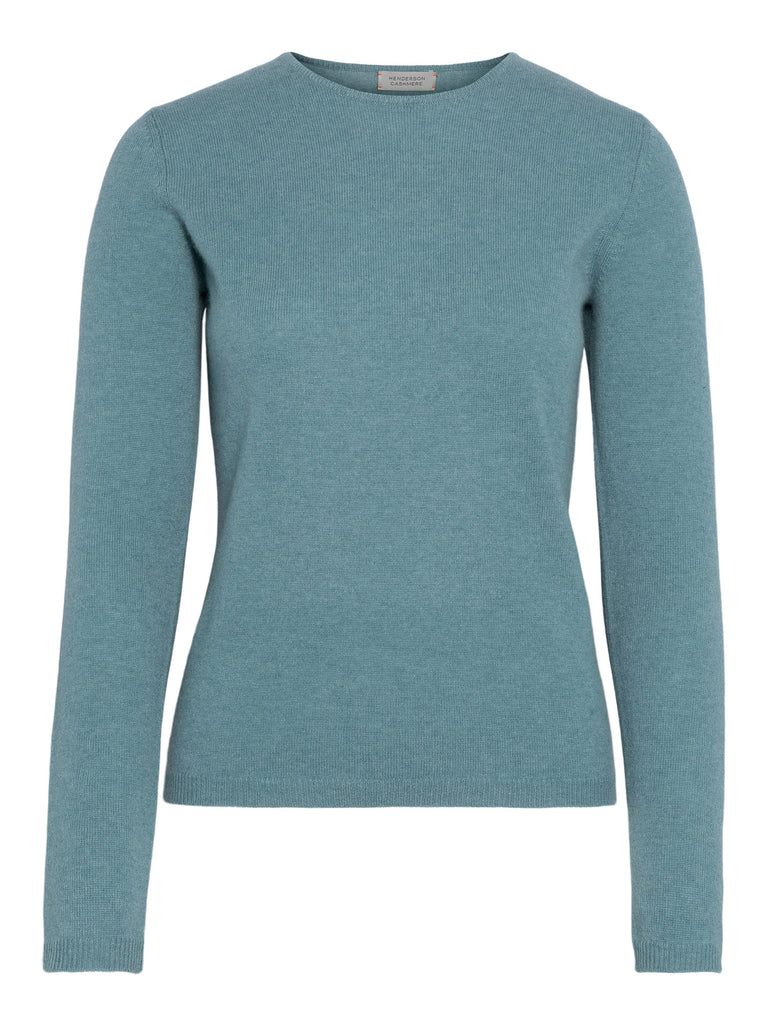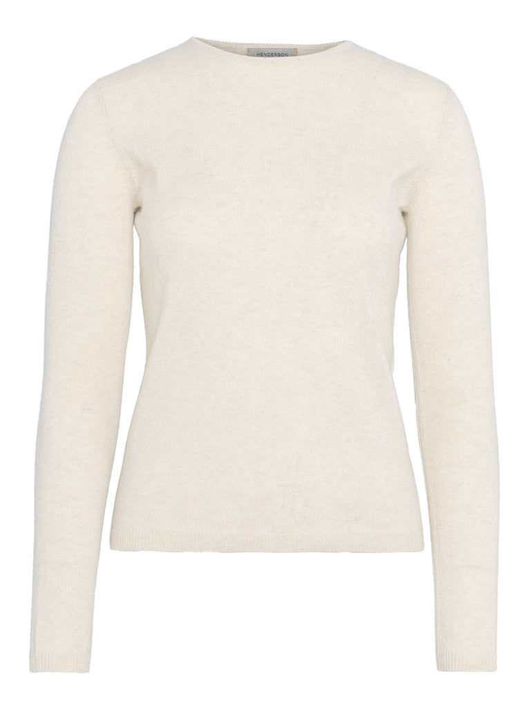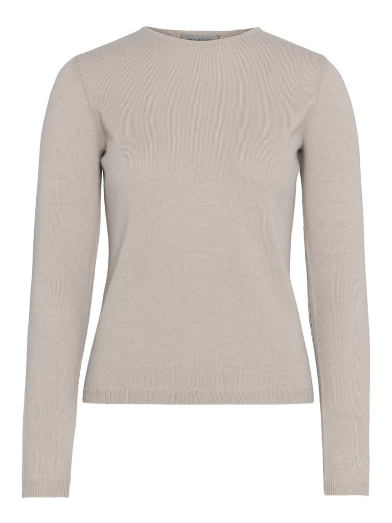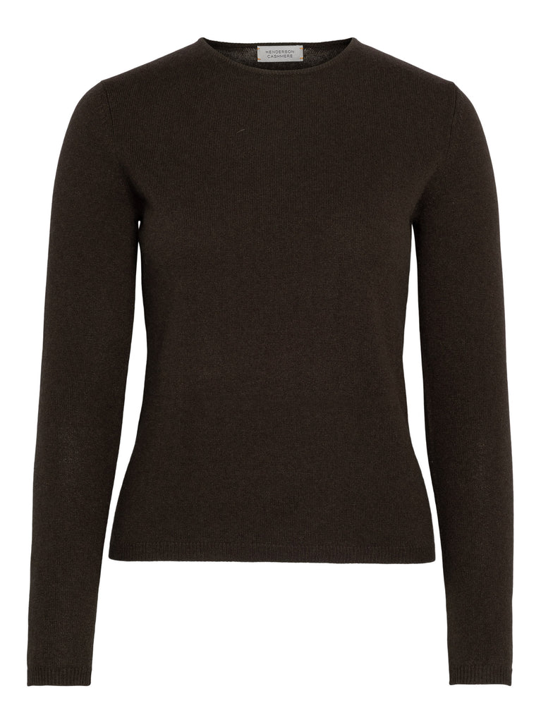 100% fineste ‘grade A’ kashmir i vår mest populære kvalitet, den lett og behagelig Henderson jersey™️. Passformen til Favorite O er lett innsvinget. Velg din vanlig størrelse. Vist her i størrelse 1.