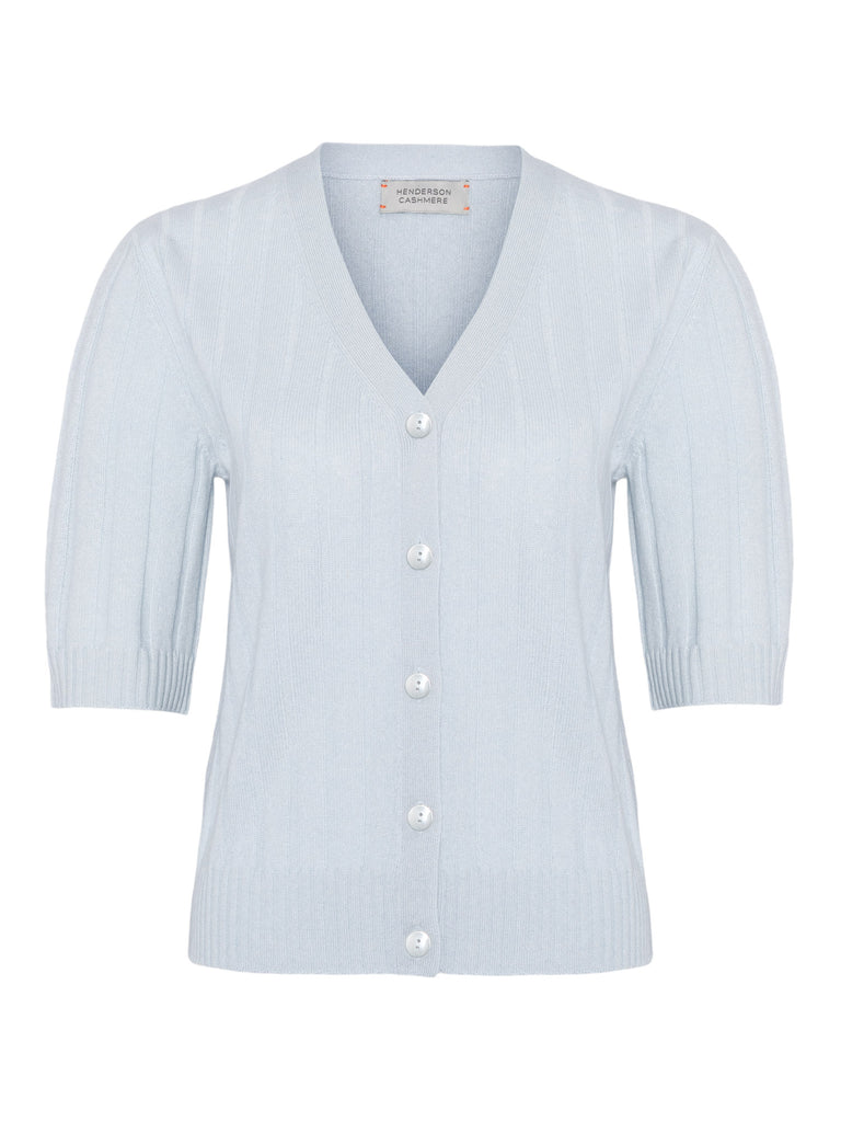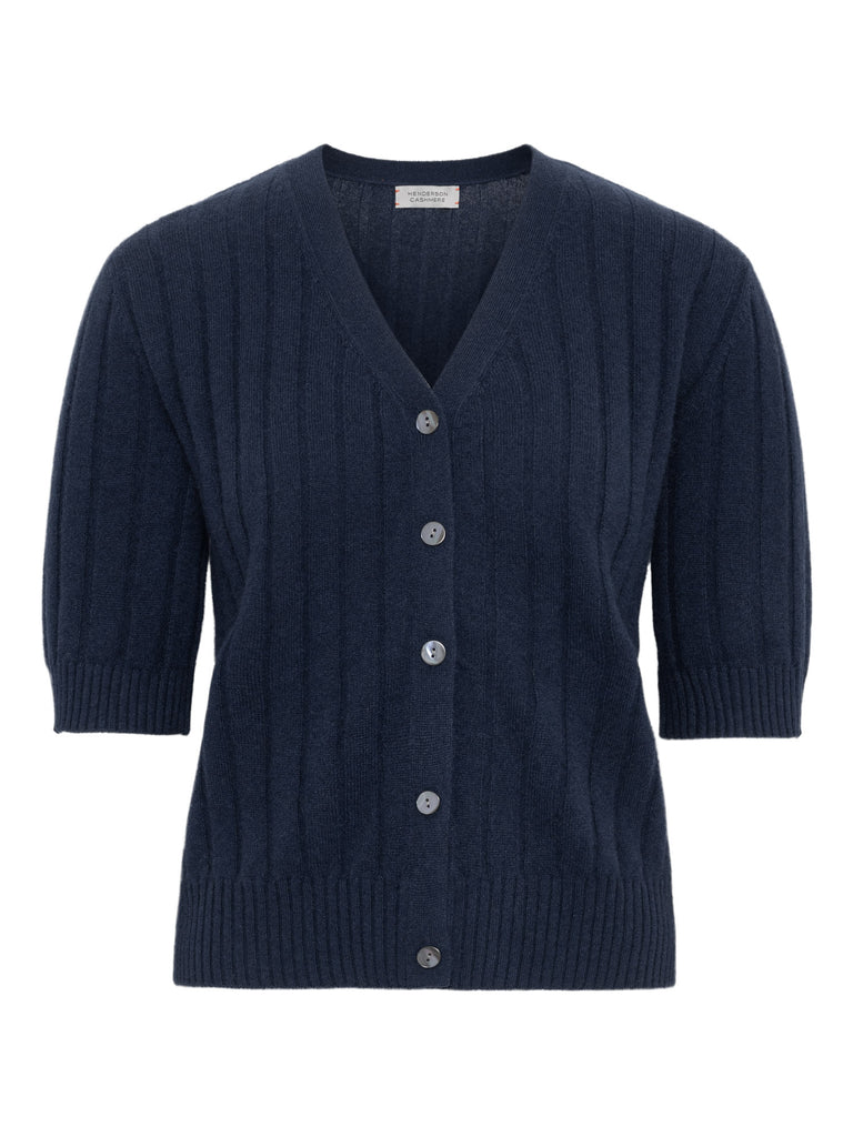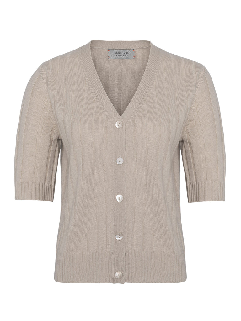 Den perfekte lille albu erm cardigan! Denne fine lille cardi har V-hals og en rett passform. Bred rib struktur og delikate dobbel ribb vrangbord ved mansjetter og bolen.